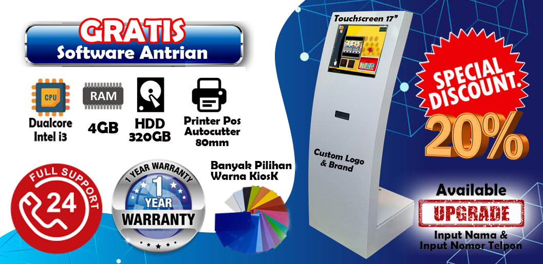 Kami adalah perusahaan IT yang bergerak dibidang Hardwre dan Software yang telah berpengalaman dalam pembuatan dan pengadaan produk KiosK untuk mesin antrian atau anjungan mandiri, yang telah teruji dari sisi Hardware dan Software. Kami juga mengerjakan Instalasi untuk produk tersebut sehingga konsumen mendapatkan produk yang siap untuk digunakan.